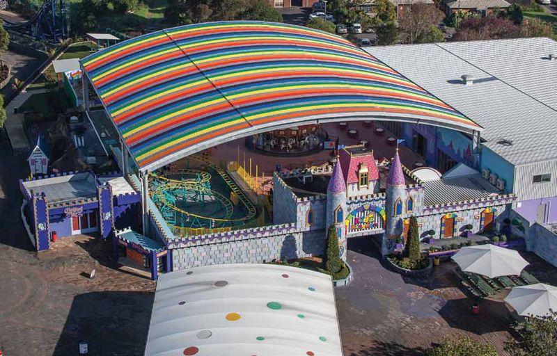 With that in mind, the Manukau-based theme park wanted a curved, multicoloured canopy that would not only keep the area protected from the elements but also provide a ‘rainbow‘ overhead for children and parents in the Kidz Kingdom rides and playground area, which is aimed at smaller children.