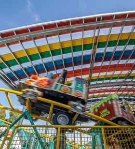 “Rainbow’s End wanted the curved, rainbow-coloured roof – that was always the concept, which was an interesting cover over all the new rides,” says Maurice.
