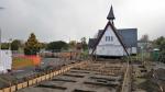 The church was moved by Heritage House Relevellers and managed by director Lindsay Smith. It was jacked off its original foundations using pneumatic jacks and steel whalers were then placed beneath to support the building. Wheeled bogies were positioned under the whalers and the building was pulled along timber rails. “Once up on its rail track the building was moved aside surprisingly quickly,” says Suzanne. “It seemed to move at about one metre every five minutes and was quite spectacular to watch.”
