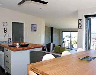 aluminium framed exterior joinery by First. Vitex decking and Vitex framed glazed balustrade structure. The home is designed to be passively energy efficient and insulated above code requirements. High level windows located on the east wall of kitchen provide passive ventilation.