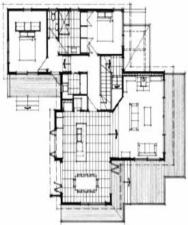 A stack bond concrete block wall provides a feature to the entry foyer and provides thermal mass in the family room. The entry, bathrooms, kitchen and dining have tiled floor areas. The remaining areas are carpeted.