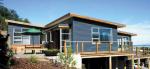 The house has been designed with minimal cut and fill to naturally step up the site. The entry, sheltered by a porch, is on the lower level and leads up a light filled stairway/gallery to the open plan living area. The kitchen and dining area open out to a sheltered, sunny outdoor deck/ living area. All living areas have a sunny aspect, panoramic views and open onto the surrounding timber deck.