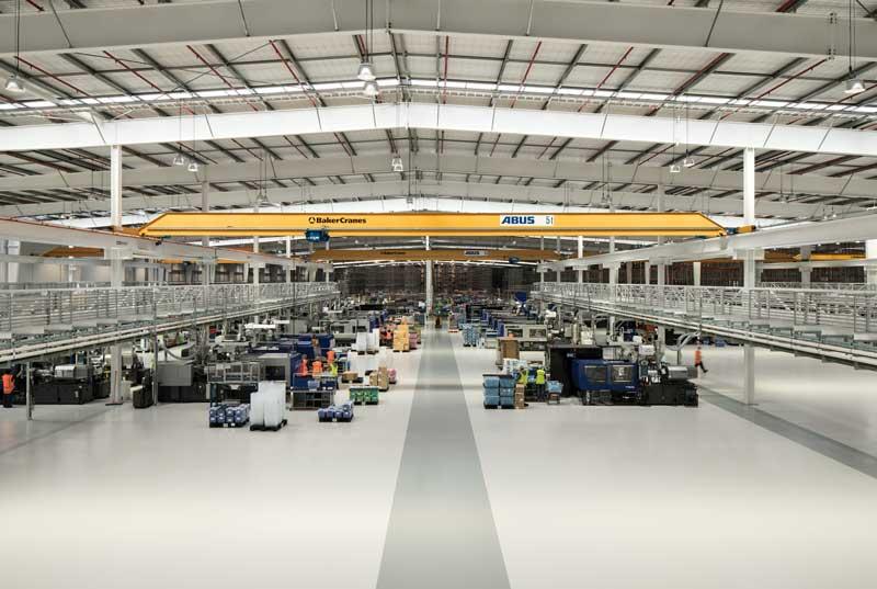 A mixture of traditionally reinforced, fibre reinforced, combislab and post-tensioned concrete floors with epoxy coatings were used to meet the varying demands of the facility.