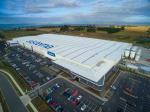 A curved façade reminiscent of the ‘Sistema blue clip’ greets visitors to the new building, which has 47,000sq m of manufacturing, storage and distribution space as well as 5000sq m of offices and ancillary rooms.