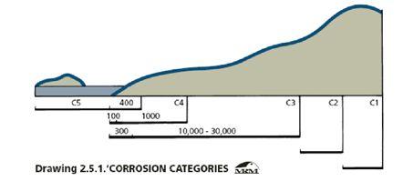 Determining Corrosion zones is a complicated issue because contrary to some of the assumptions made, NZ does have a C5 Zone with about 50% of its coastline in a very severe marine environment. However to further complicate things the corrosion zones do overlap.