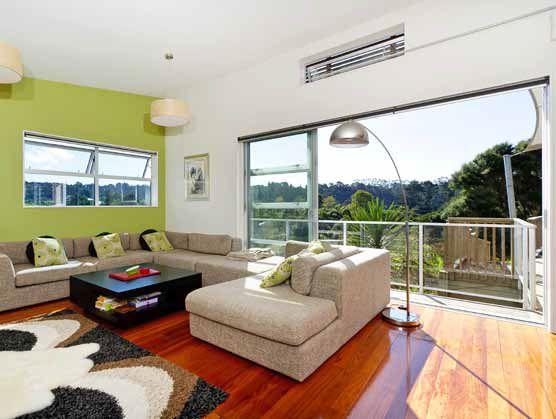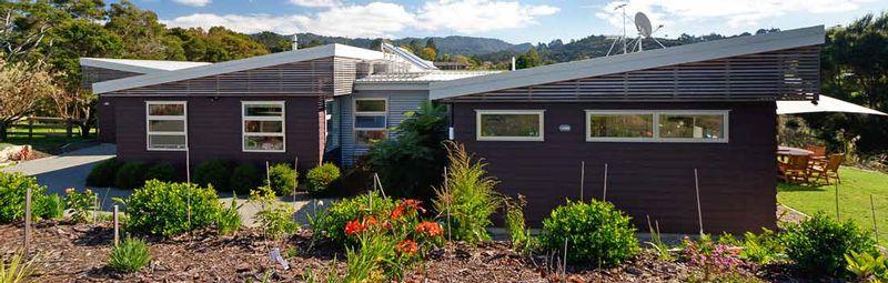 But when the costs of subdivision and building started escalating, the project was canned and the two families began looking for a section where they could start anew. Eventually they found a suitable site with a northerly aspect in the Oratia foothills, in west Auckland. “So we went back to Johann and said we’re going to have another go at this,” says Neil. While the couple was determined to incorporate as many sustainable features as possible, they also had an eye on practicality and budget. They also wanted the home to be single level so Neil’s parents could get around easily and they wanted separate north-facing living areas for each family. Incorporating passive solar gain was also important, as was open plan living that flowed outdoors but could be closed down if required.