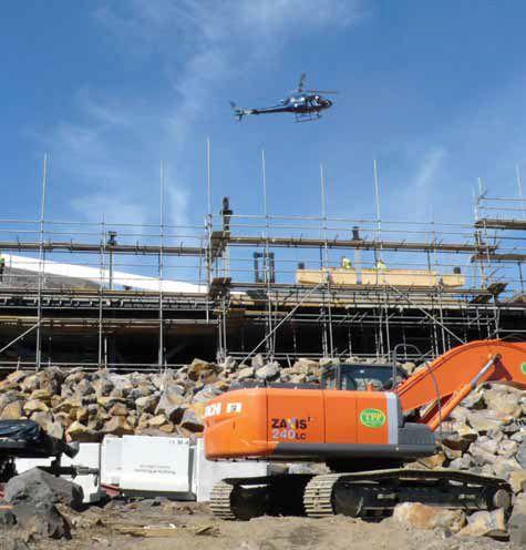 Due to helicopter weight restrictions, all the steel componentry, roof panels and structure had to be designed to weigh less than 900kgs. Precast units transported over snow were also weight-limited to loads of 1.5 tonnes – or six tonnes on a towed trailer.