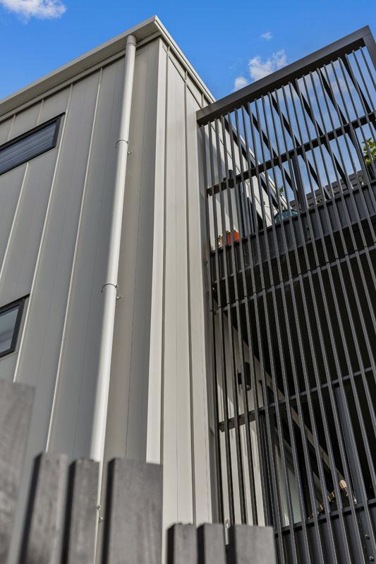 Part of that mix of materials is the roofing, in Trimrib ColorCote® MagnaFlow™ in ‘Titania’ and ‘Ironsand’, with the contrasting colours helping to delineate the homes.