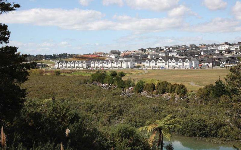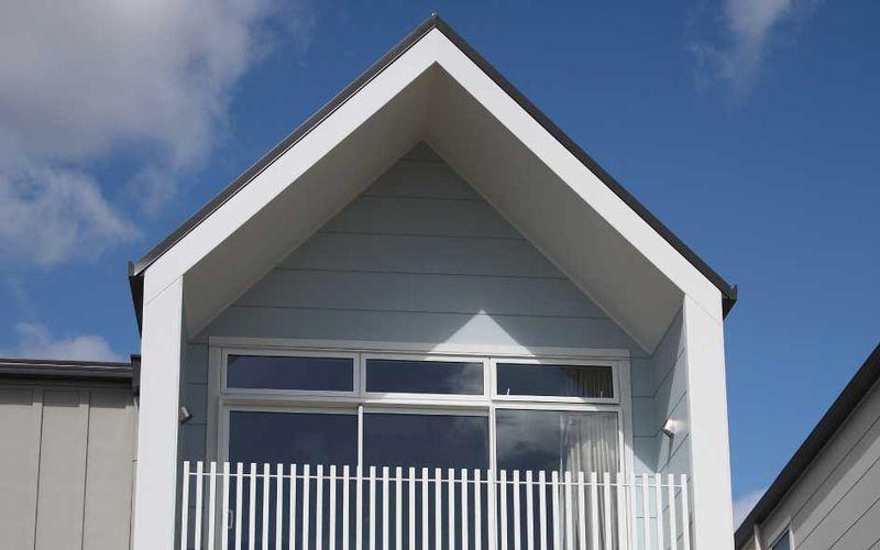 The 145-190sq m two-level homes have a boatshed look referencing the views over the Orewa river from the Seaview community in Millwater.