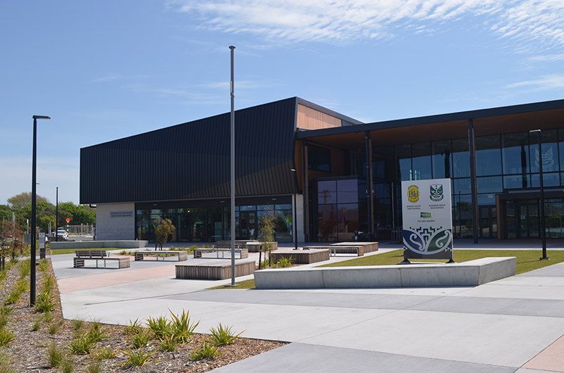 The multi-million dollar schools are two of five schools built under a public private partnership (PPP) between the Ministry of Education and the ShapeEd consortium. Completed for the start of Term 2 in 2019, the 23,000m2 schools have been designed with an approach to learning that emphasises community, collaboration and connectivity in all aspects of school life. Students from both schools not only share some facilities but compete in inter-school competitions, sports challenges and debates.