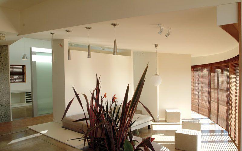 “The challenge with passive solar design is to store the heat and distribute it evenly to all parts of the house - even those that never get the sun.” To aid in this process the house is open plan with levels and partitions creating separate spaces.
