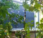 The roof is a trapezoidal profile in 0.55 COLORSTEEL® Maxx® ‘Smokey’. Guttering is Marley ‘Typhoon’ and downpipes use a combination of Marley half-round ‘Eclipse’ against the steel cladding and standard round piping on the porch areas. A timber fascia of Western Red Cedar runs along the front (south) face of the house. Soffit linings are 12mm Shadowclad. All windows and external doors are in double glazed silver anodised aluminium with the exception of the louver windows in living room and bedroom areas. The lower studio area has a window that uses Custom Orb translucent horizontal sheeting making a great contrast with the adjacent vertical Colorsteel.