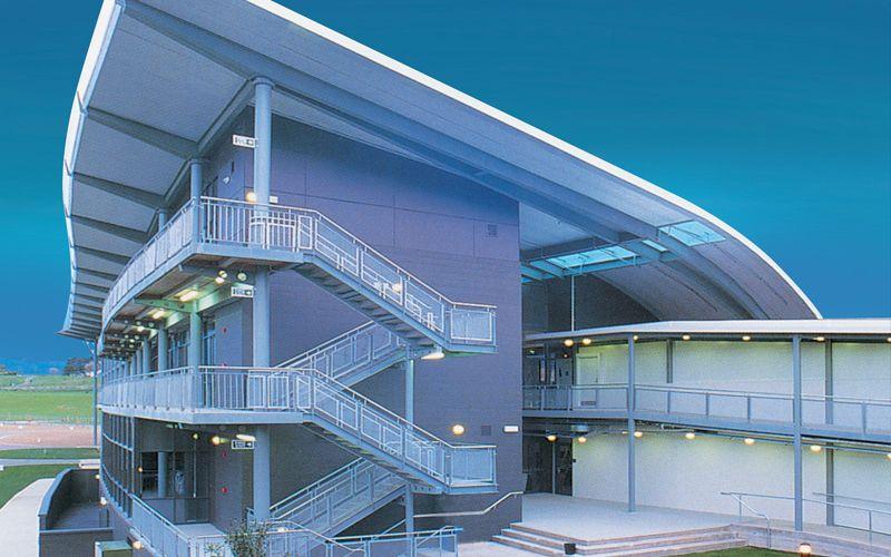0.55 BMT G550 corrugated Zincalume® steel was selected as the main roofing material. The corrugated profile is symmetrical allowing the curved roof shape to be achieved. In addition to providing the eye catching silver colour, the Zincalume® coating also combines the corrosion protection of aluminum with the sacrificial protection of zinc, giving the advantages of both metals. The resulting alloy significantly enhances the corrosion resistance of roofing in the aggressive New Zealand environment where prevailing winds can carry salt laden air many kilometres inland.