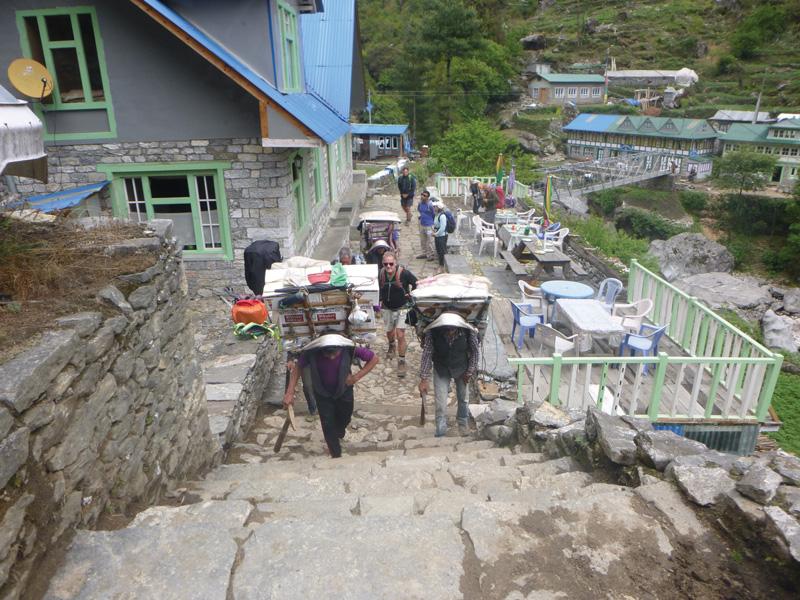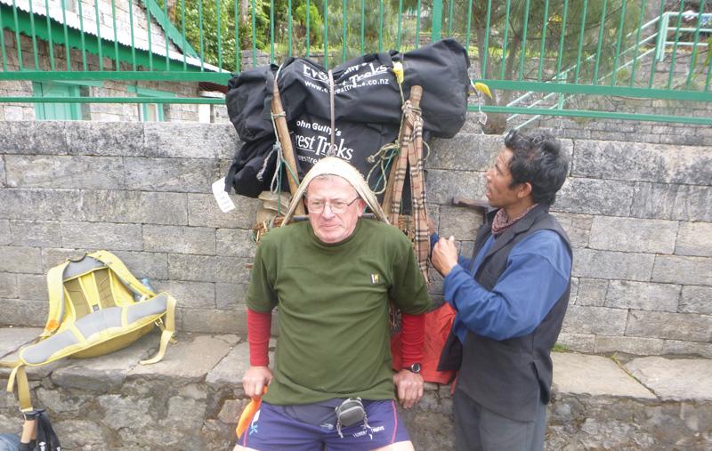 We set off walking up the beautiful Khumbu valley, steadily gaining altitude. It was amazing to see how much civilisation there was in such a remote area. All we carried ourselves were light day packs. The Sherpas carried the bulk of our gear, these slightly built people carried up to 70Kg or more, supported only by a strap around their head, up and down hills for days on end. That’s 18 dozen cans of beer!