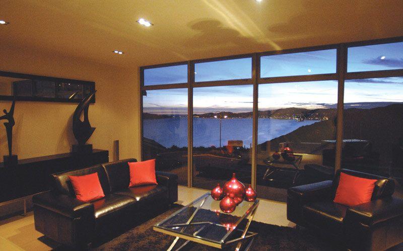 The Pendrous home is situated in the Seagrove subdivision which is a typical Wellington site of just over 500 square meters. The flat area forming the building platform is approx. 250 square meters the balance of the site slopes away at 35 to 40 degrees at the rear.