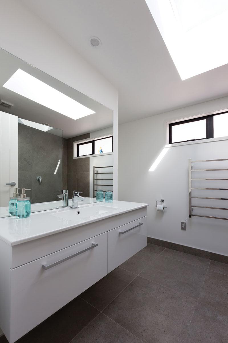 The family design and build team longed for a beach house that could accommodate immediate family, and overflow of extended family and friends during the holidays. The team agreed on an aesthetic that would stand modest in its surrounds yet felt light and airy inside, particularly on an overcast day. Karen’s love for skylights came in handy in achieving this ‘airy feel’, and they were sprinkled throughout the beach house accordingly.