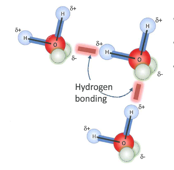 In ice and liquid water, individual H²O molecules bond together in a special way, called ‘hydrogen bonding’.