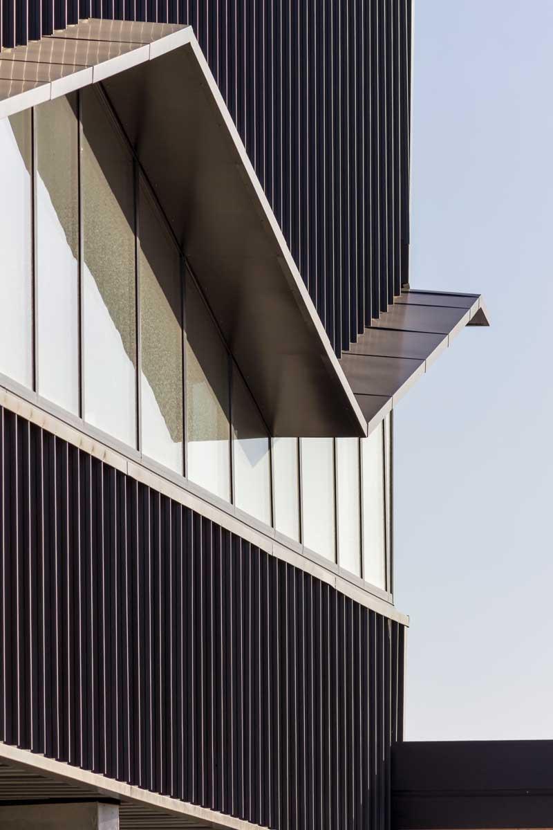 The vertical Espan® cladding provides elegant lines along the building’s profile until mid-span, when it’s interrupted by an angled feature window and solar shade before continuing to the structure’s peak.