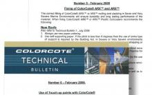 PCC release technical bulletins 5 and 6. Bulletin 6 deals with the correct procedure related to the fixing of ColorCote® AXR TM and AR8 TM in severe and very severe marine environments, ( also note the article on page 17).