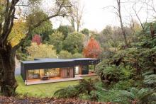 When the owners of Houhere bought a piece of land on Banks Peninsula six years ago, the intention was to return it to a natural setting and build a home that could transition from a weekender to a permanent residence.