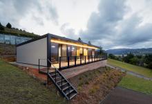 On the outside, the architecture is reminiscent of the back country huts of Central Otago, and...
