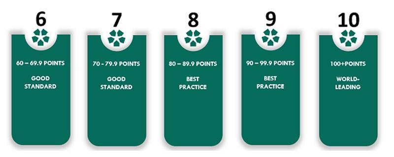 Once all credits are assessed, the total number of points achieved is compared against the available points in the rating tool and a certified rating is awarded.