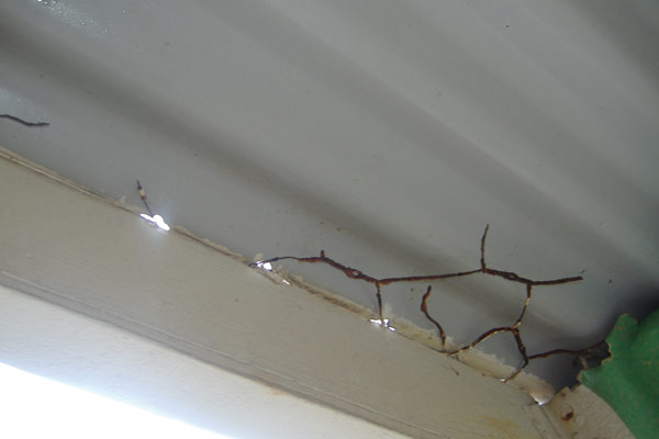 - Corrosion near to the gutter line (in one instance there was no lining on the verandah eave which had netting and underlay!