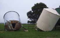This personal report by Stuart Thomson highlights the validity of the claim previously made in Scope that light metal roof cladding not only can save money but can save lives as well. Heavy tile roofs did not fare well but metal roofs were bent but not broken.