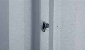Some steel framed warehouses were affected when their contents fell onto them while in others roof cladding slid and moved to slot the fixing holes as shown by the following photo; another good reason for using load spreading washers.