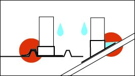 - Ponding - allow no dents or areas where water can rest permanentl. Provide correct sloping of flashings etc.,ensuring the product has the required fall for all water to drain.