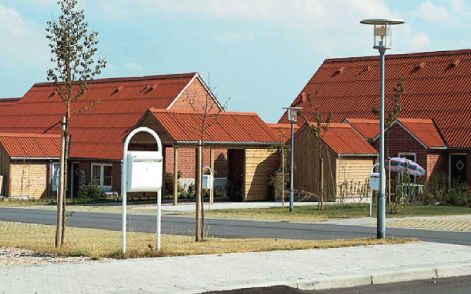 Visitors to Germany and Scandinavia will have seen roofs like this one, on a shopping centre in Denmark, with a row of “mushrooms” close to the ridge line.  These are in fact ventilators used to vent moisture from the roof space, and also to cap vent pipes from inside the building.  These replace our more familiar pipes and “boot flashings” and are certainly more aesthetic