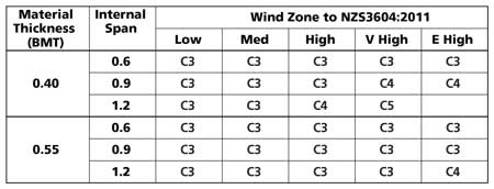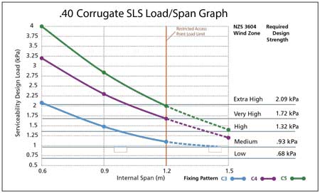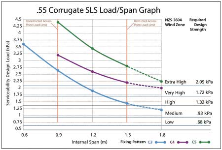 The new Load Span graphs for Corrugate are a result of new testing on spans down to 600 mm with 2-5 fasteners per sheet.