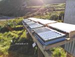This was done by building special sheds with 45 degree roofs with three rows of panels, eight different substrates and 8 different screws.