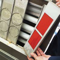 “softer” than coil coat paints. The Textured finish uses a very high build acrylic paint, effectively as an adhesive, and this is coated, while still wet, with natural rock crushed and blown into the paint to ensure good long lasting adhesion. This is then coated with a thin layer of acrylic lacquer (overglaze) to lock in the chip and provide a deeper colour and slightly glossy finish. This is also dried though an air oven with a very carefully controlled temperature gradient to provide good adhesion and flexibility. This base material also contains biocides to provide protection against organic growth.