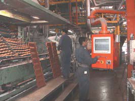 In the second process, used by AHI Roofing, metal tiles are made in an entirely different way. The ZINCALUME® steel, coated only with a thin styrene-acrylic coating is pressed into tile blanks before any other coating is applied.