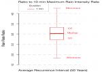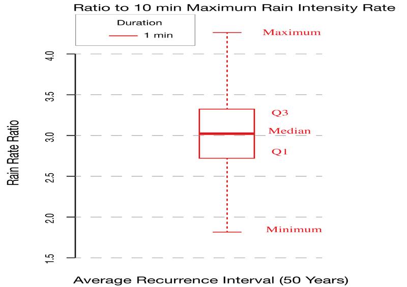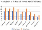 E1 requires buildings to have no more than 2% probability of flooding. That requires the use of 50-year recurrence intervals for rainfall intensity. Yet the rainfall charts in E1/.AS1 are for 10 year return intervals. That is responsible for another 34% variation in rain intensity.
