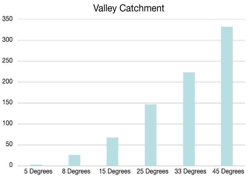 If valleys are required, enter roof pitch, valley width and valley up stand height. The output will give allowable catchment, and also give internal angle for accurate manufacture.