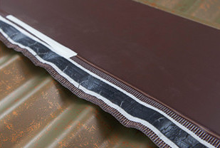 Typical soft edge is either soft aluminium or perforated aluminium a with PIB rubber backer. The latter is more common. The PIB rubber, when dressed down on a hot day, can adhere to the roofing surface and prevent the escape of air at the apex. By removing all or most of the PIB backing this is avoided, and the perforations in the aluminium become an effective pathway for trickle ventilation, while still being an effective baffle against wind-blown moisture. This product is marketed as vented soft edge and is available from all suppliers.